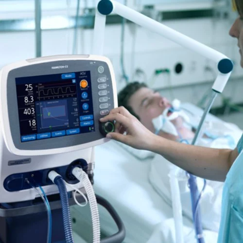 The HAMILTON-C2 mechanical ventilator is a universal ventilation solution for all patient groups. The HAMILTON-C2’s compact design and independence from external power and air supplies allow for maximum mobility throughout the hospital. The integrated high-performance turbine guarantees top performance even with noninvasive ventilation.